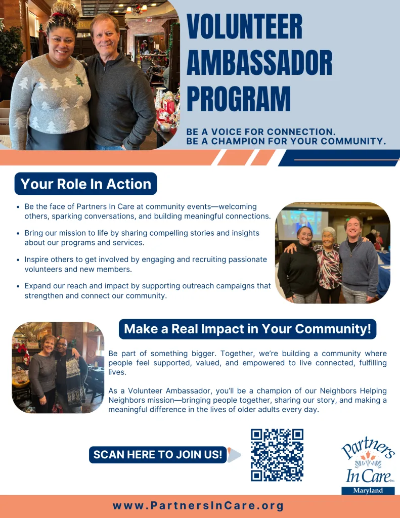 Through care and companionship services, volunteer opportunities, and community-centric programs, Partners In Care Maryland, Inc. empowers older adults to maintain their independence, strengthen their connections, and thrive.